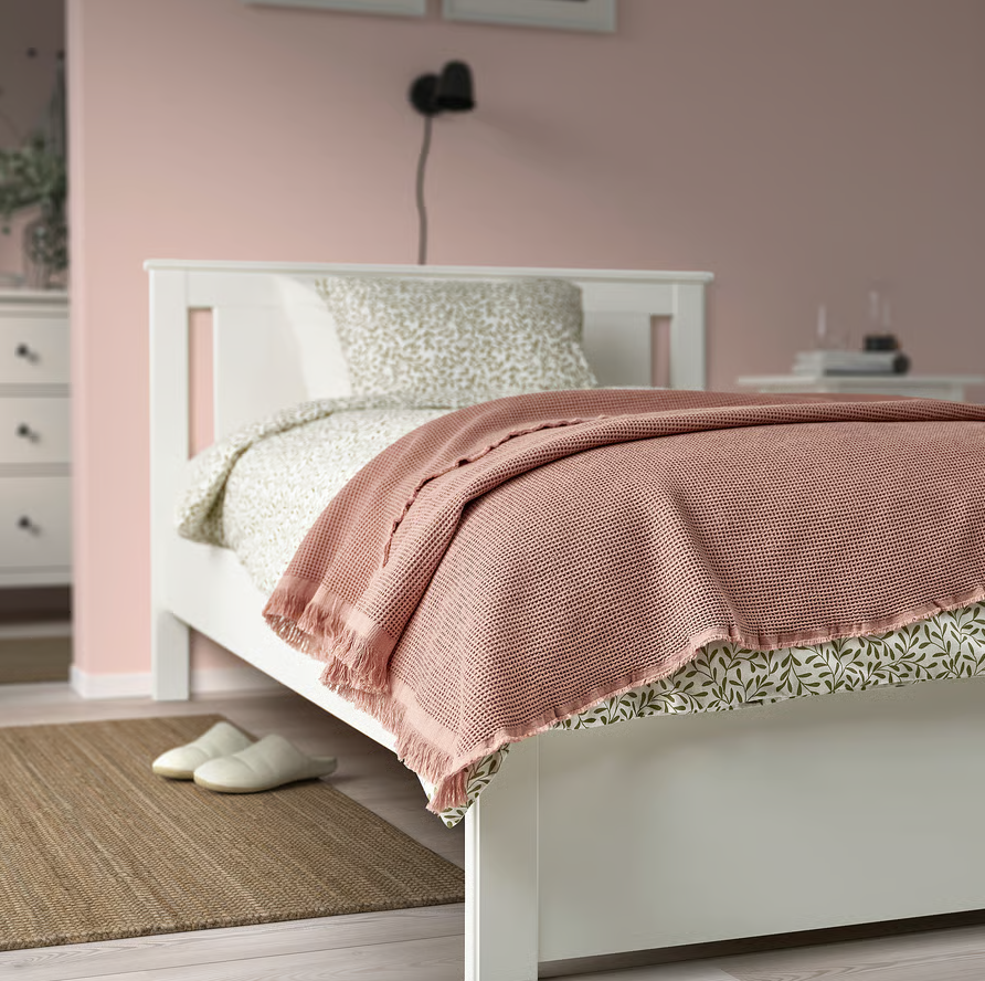 The pale pink tone of KLOTSTARR throw is made from agricultural residue of the beetroot. The earthy shade pairs well with the waffled texture and injects a soft new look into your room.